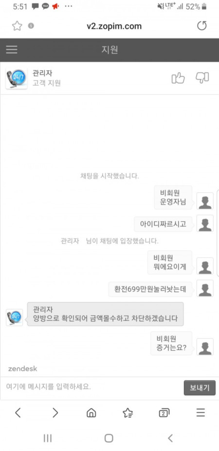 당장 이용중단 하십쇼 일정벳했는데 환전10시간동안 안내주더니 게임기록 누락으로 환전지연됐다하다가 갑자기 하루지나니까 양방드립치면서 몰수차단 잃을땐 가만히있다가 따면 바로 양방드립치는양아치 싸이트입니다~