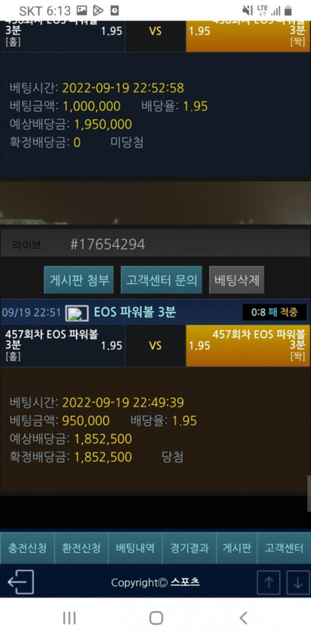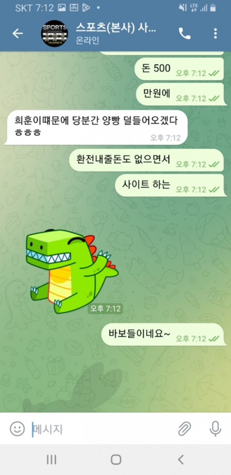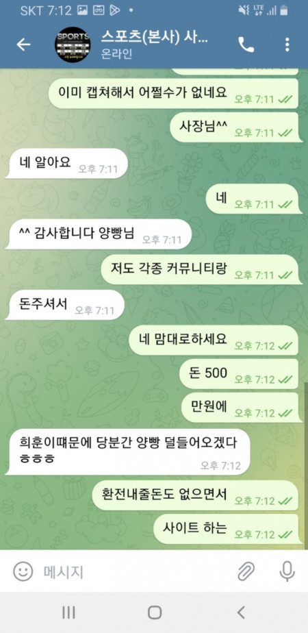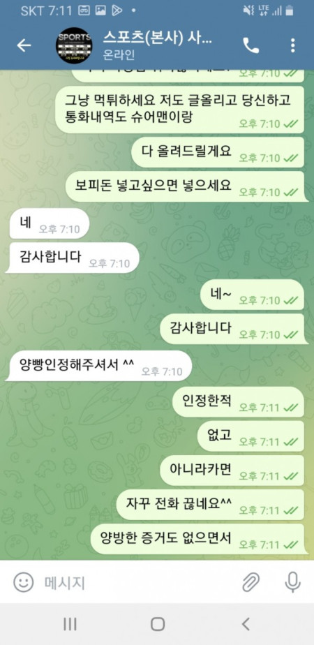 진짜 구멍가게 악질사이트입니다. 이용하지마세요 돈잃을땐 아무말도 없다가 돈 따면 바로 양방이라고 돈안줘요 대화내용 보세요;; 이게 할짓입니까 입금은 잘받고 환전은 없는사이트 양방한적도 없고 그냥 지할말만 하는 놈들 그냥 알바같은놈이랑 통화한 내역도 곧 올려드리겠습니다^^ 배팅내역 이게 무슨 양방입니까 그냥 노름한건데